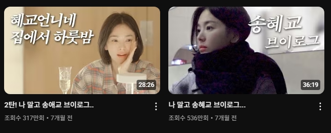• 강민경 유튜브에 송혜교의 첫 브이로그 전격 공개