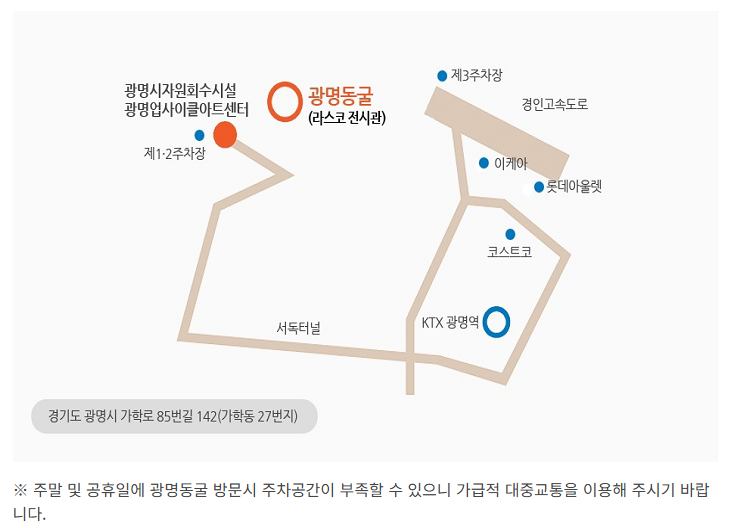 → 환승은 있으나 광명역 인근 먹거리나 카페 이용 후 동굴 방문 시 유용합니다.