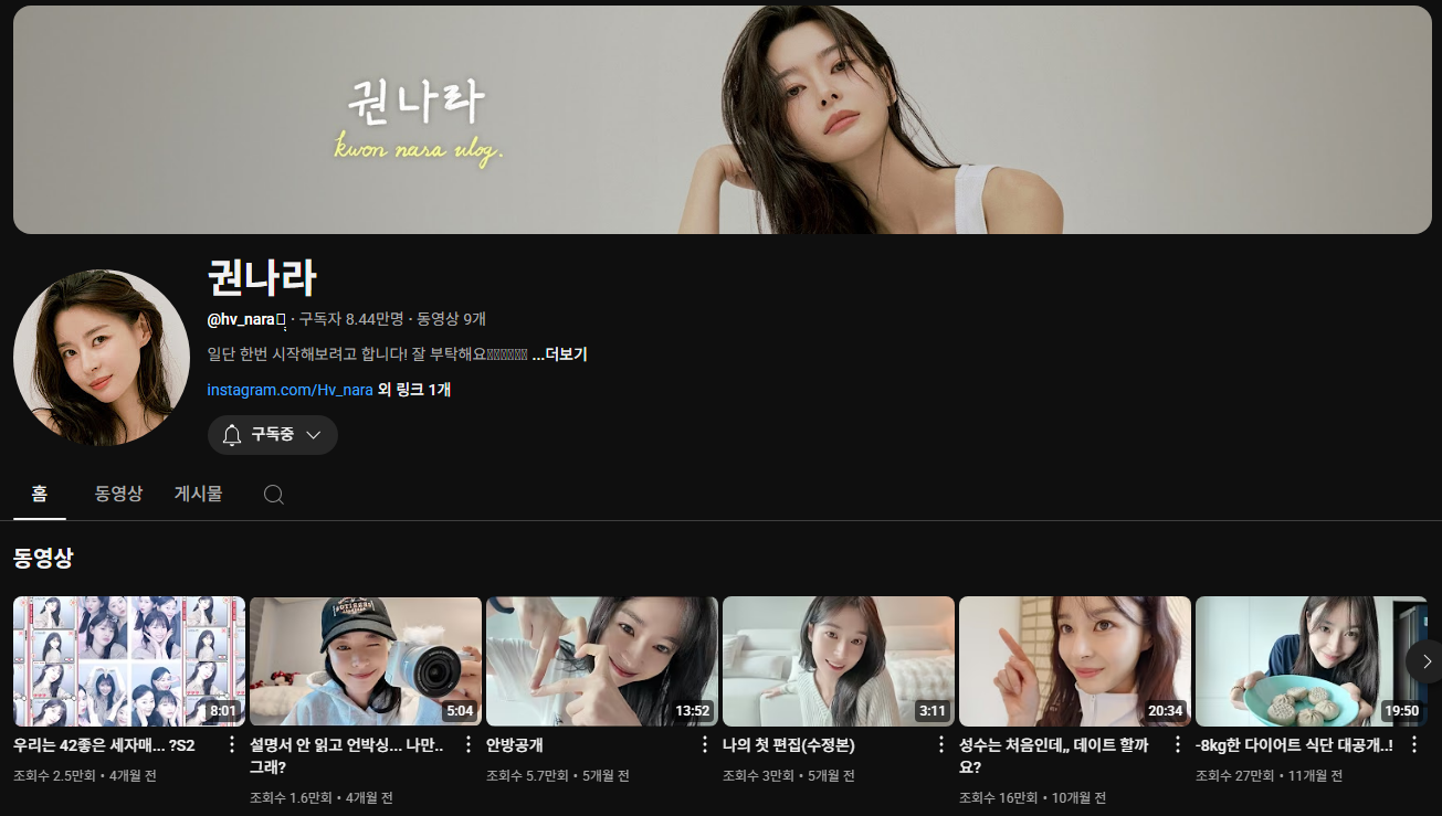 권나라 인스타와 유튜브 근황