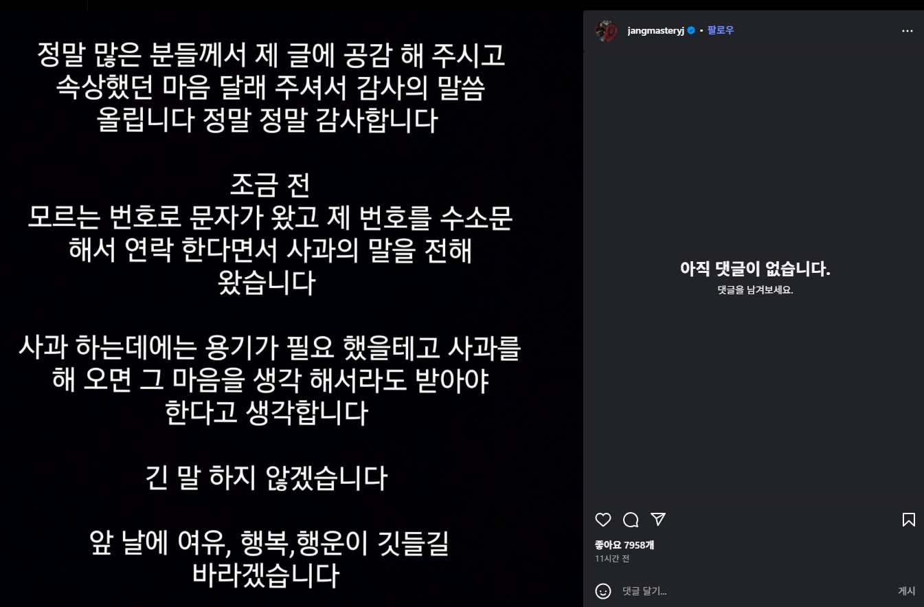 ✔️ 김진웅, SNS 통해 공식 사과문 게재