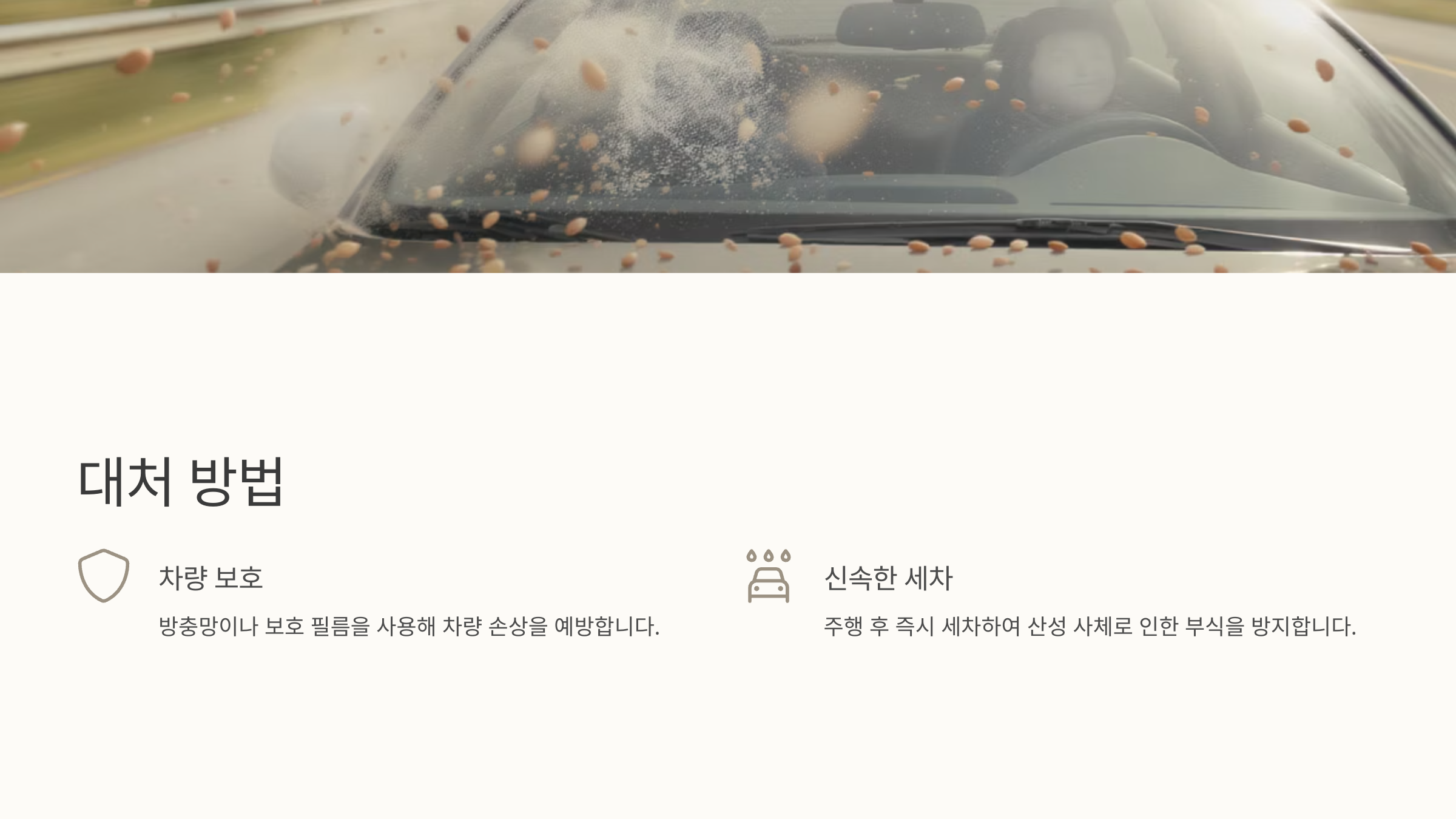 러브버그는 해를 끼치지 않더라도 대량으로 몰려드는 특성 때문에 불쾌감을 유발할 수 있습니다. 특히 자동차 운행 시, 방충망이나 전면 보호 필름을 장착하는 것이 차량 손상을 줄이는 데 효과적입니다. 주행 후 즉시 세차를 하여 러브버그 사체를 제거하는 것도 도장 보호에 도움이 됩니다.