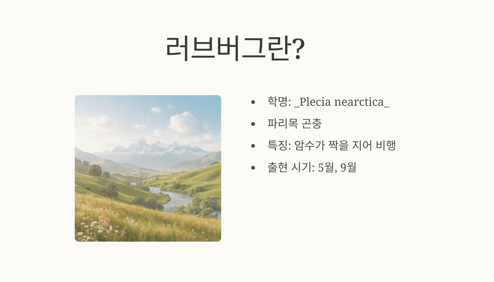여름철이 되면 도로 곳곳에서 검은색 작은 곤충 무리가 자동차 앞유리에 달라붙는 모습을 종종 볼 수 있습니다. 이 곤충은 바로 러브버그(Lovebug)입니다. 이름만 들으면 사랑스러운 곤충 같지만, 실제로는 사람들에게 불편을 주는 사례가 많아 러브버그는 해충인지, 유익한 곤충인지 논란이 많습니다. 이번 글에서는 러브버그의 생태와 특징, 그리고 실제로 우리에게 유익한지 해로운지 객관적으로 살펴보겠습니다.
