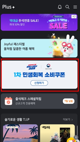 | 신청 후 확인 | KB Pay 앱 또는 KB국민카드 앱 → ‘ 민생회복소비쿠폰 배너 ’ |