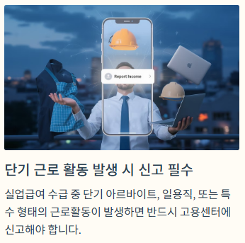 - 단기 알바, 일용 근로, 특수 근로활동 발생 시 반드시 신고