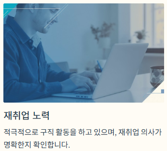 | 구직활동 의지 | 구직 신청 및 구직 활동 입증 가능 | 워크넷 및 센터 증빙 |