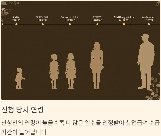 - 소정급여일수는 가입기간과 연령에 따라 결정됩니다.