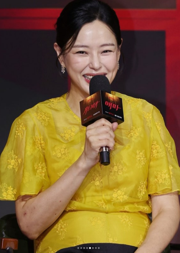 네. 출산 6일 전, 넷플릭스 ‘애마’ 제작발표회에 직접 참석해 프로다운 면모를 보여주었습니다.