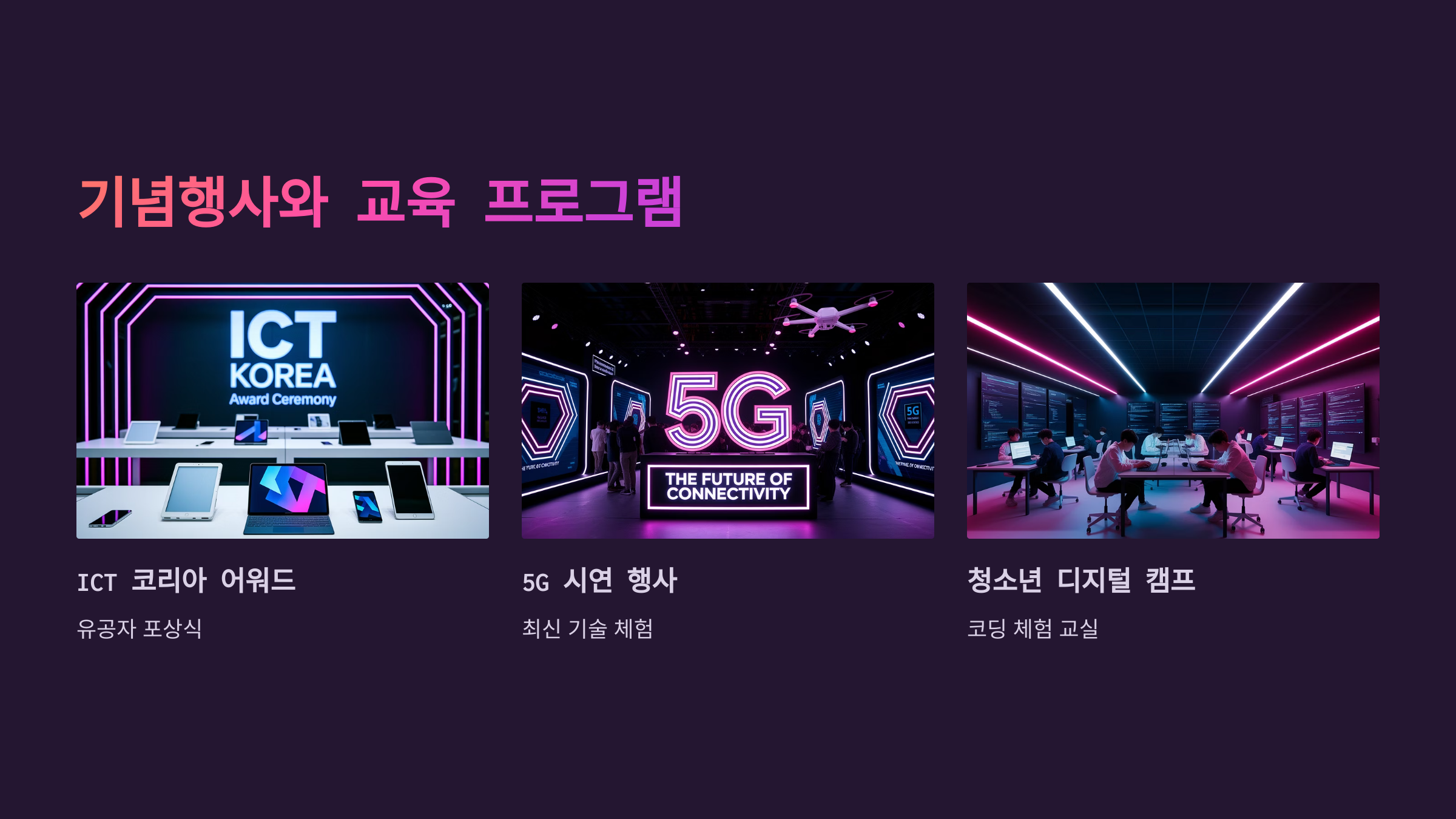 ICT 포럼, 유공자 시상, 청소년 디지털 체험 등 다양한 전국 행사들이 열립니다.