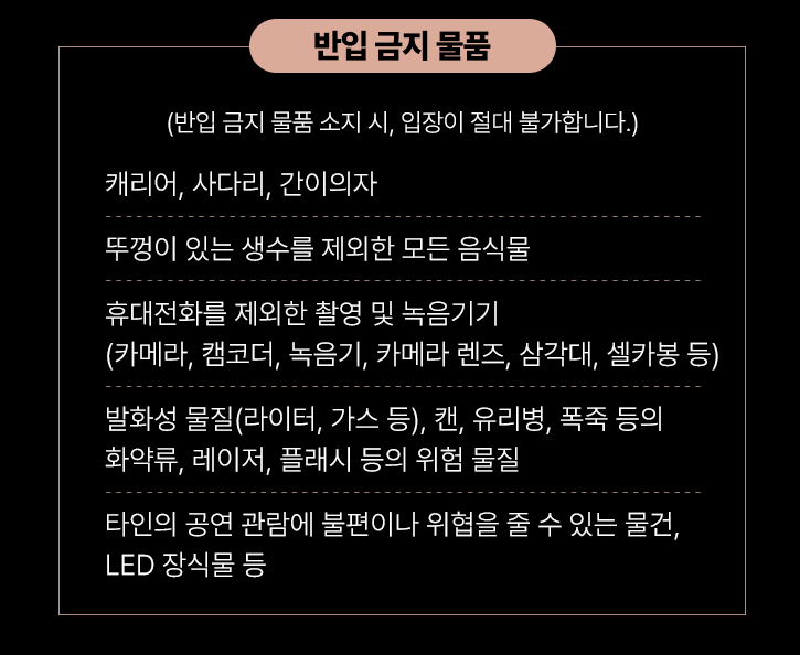 - 안전 규정: 공연 중 주최 측 안내 준수 필수