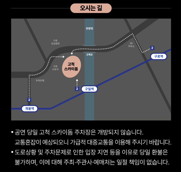 - 🏟️ 좌석 배정: 공연 당일 매표소에서 현장 선착순으로 지정
