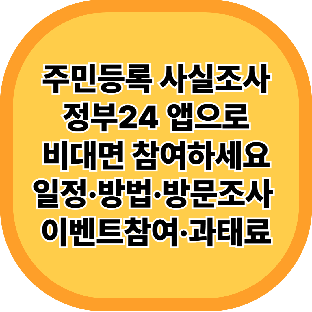 2025년 주민등록 사실조사는 7월 21일부터 10월 23일까지 전 국민을 대상으로 진행됩니다. 정부24 앱을 통한 비대면 참여 방법부터 방문조사 대상, 과태료, 이벤트 정보까지 꼼꼼히 정리했습니다.