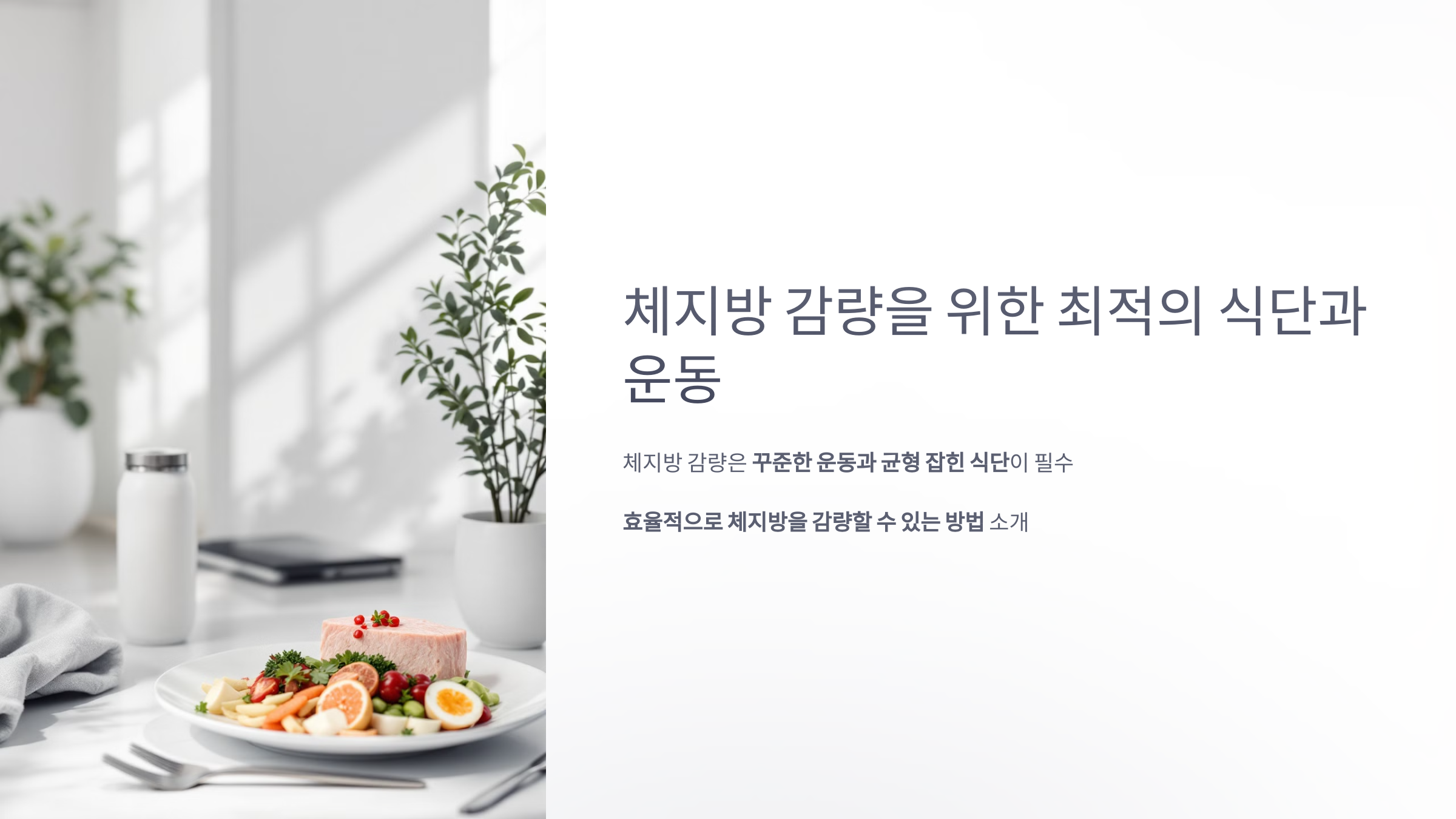 체지방 감량은 단순히 숫자를 줄이는 것이 아니라 건강한 몸을 만드는 과정이에요. 꾸준한 습관으로 건강하고 탄탄한 몸을 만들어 보세요! 다음 글에서는 "체지방 감량을 위한 식단 레시피"를 소개할 예정이니 기대해 주세요!