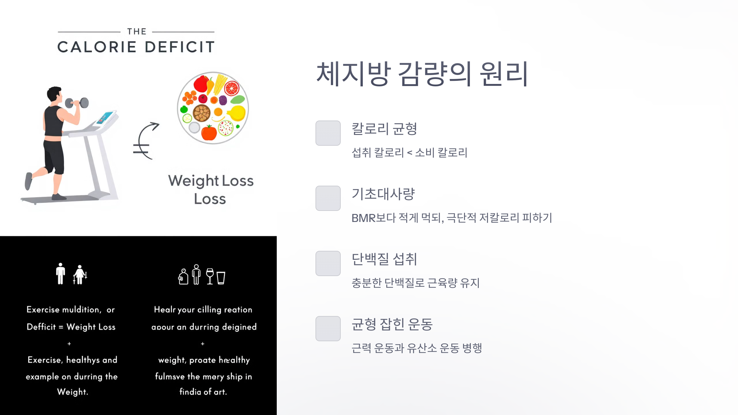 ✔️ 운동만으로는 부족해요. 식단 조절이 반드시 필요해요!