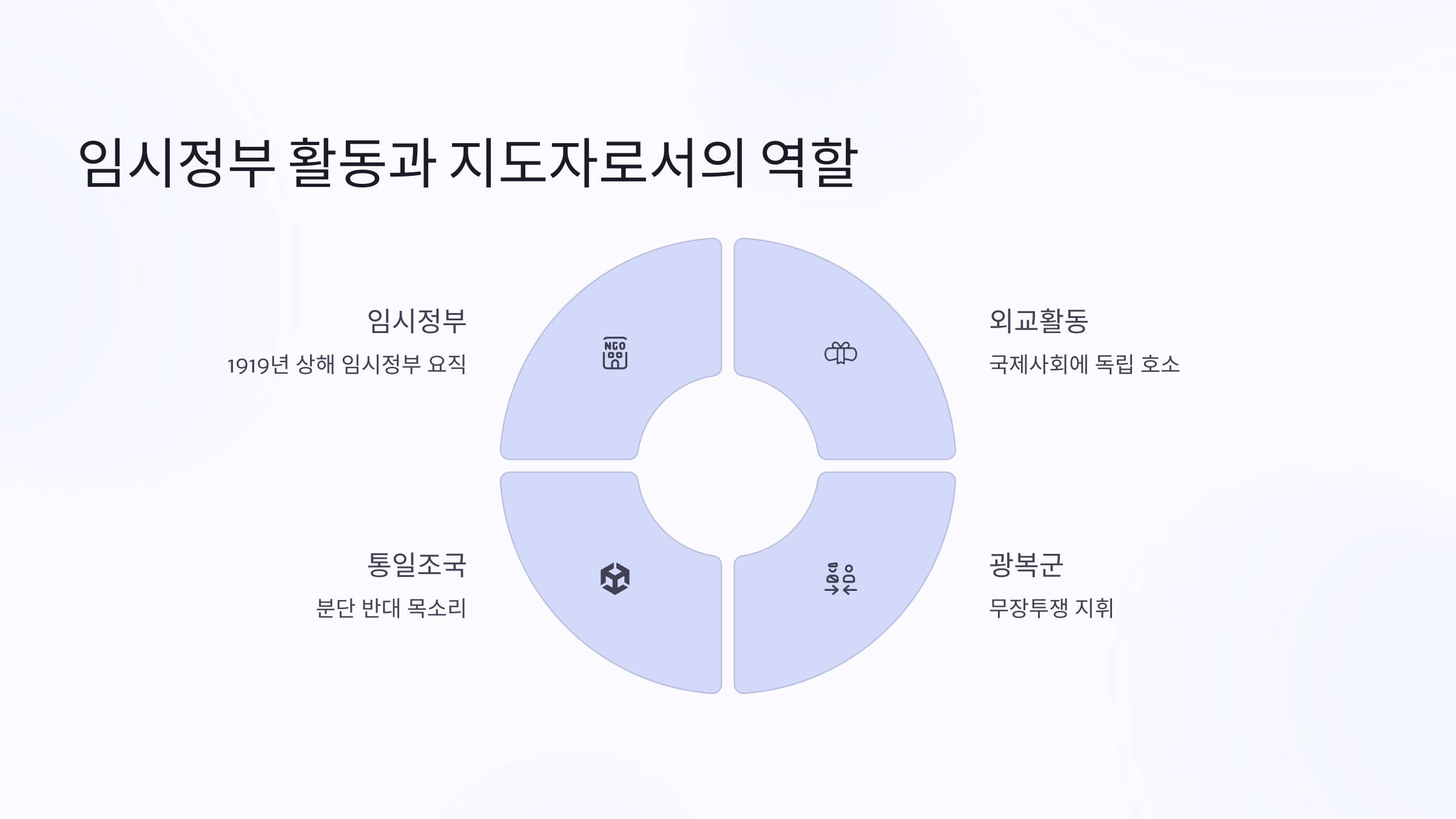 - 임시정부 활동과 지도자로서의 역할
