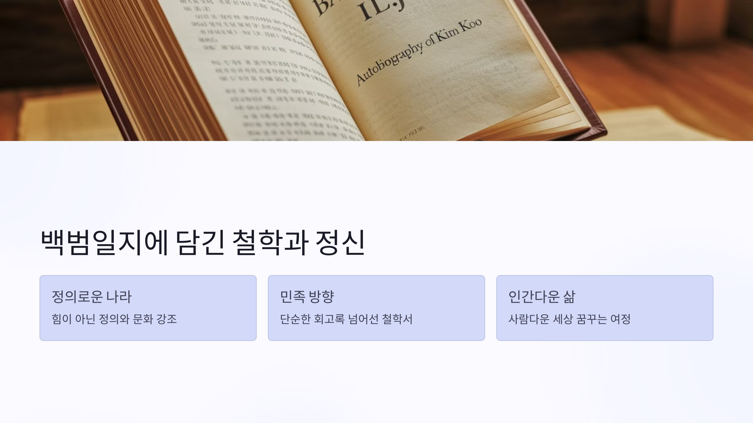 김구 선생의 자서전인 『백범일지』는 단순한 회고록을 넘어서, 민족의 나아갈 방향을 제시하는 철학서로 평가받습니다. 특히 “내가 원하는 나라는 힘이 센 나라가 아니라, 정의롭고 문화가 있는 나라다”라는 문장은 수많은 사람들에게 울림을 주었죠. 그의 삶은 그저 싸움의 연속이 아닌, 사람이 사람답게 사는 세상을 꿈꾸는 여정이었습니다.