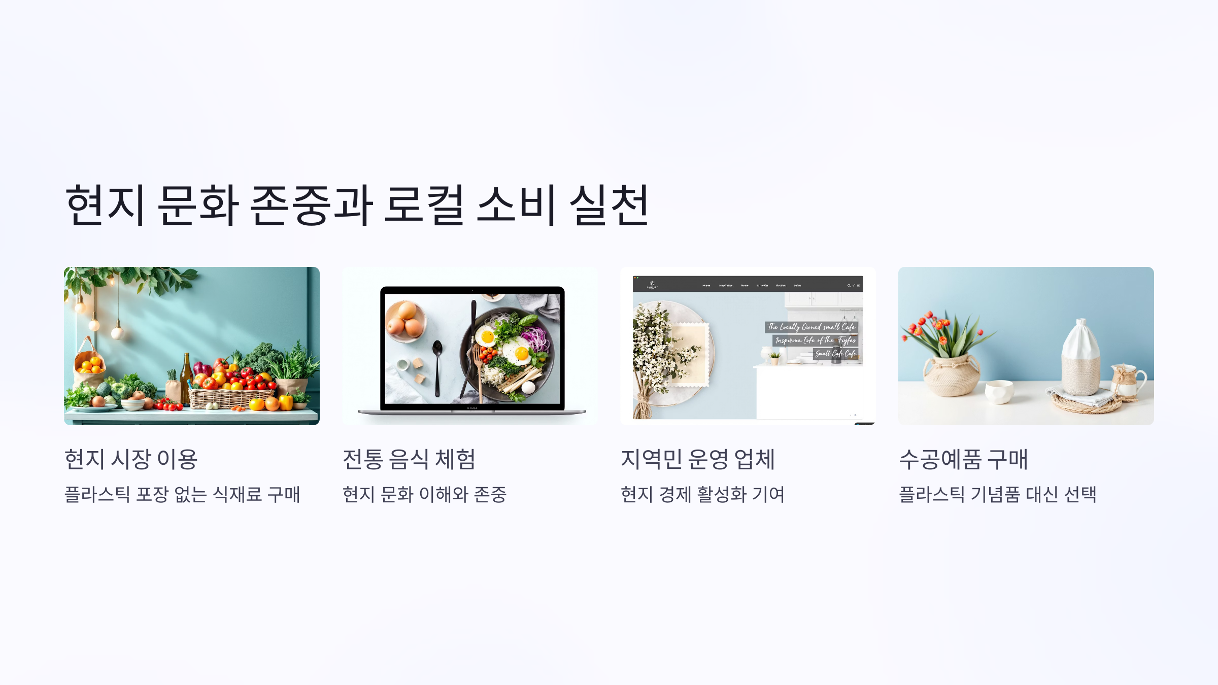 💡 지구도 살리고, 여행의 진정한 맛도 느낄 수 있는 일석이조의 방법이에요!