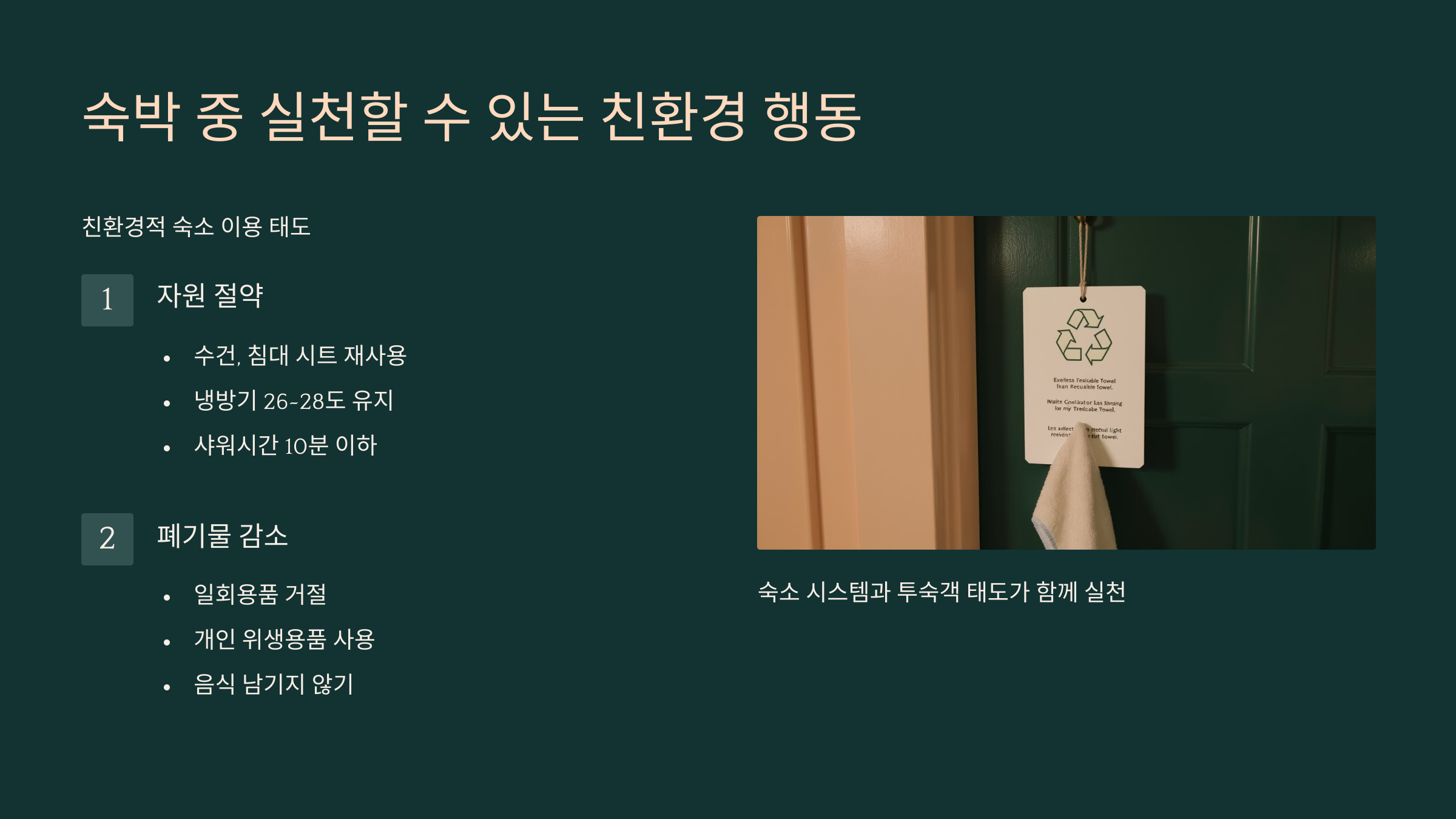 - 숙박 중 실천할 수 있는 친환경 행동