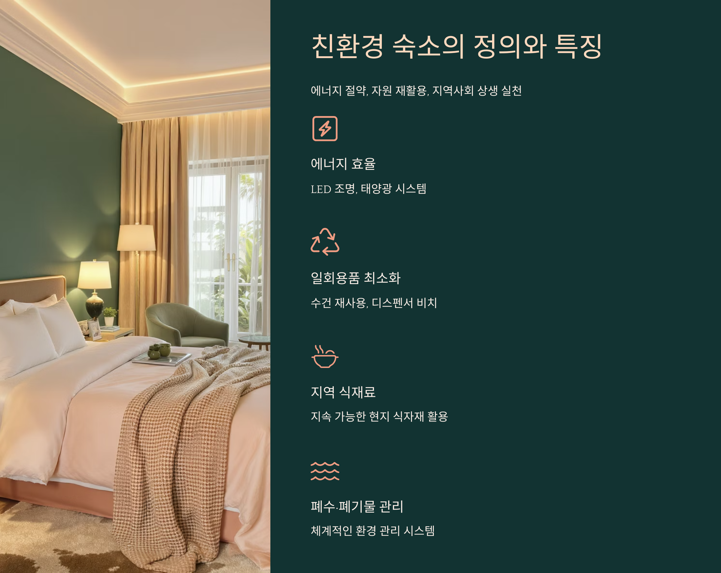 🌍 친환경 숙소는 단지 편안한 잠자리가 아니라, 지구를 위한 숙소입니다.