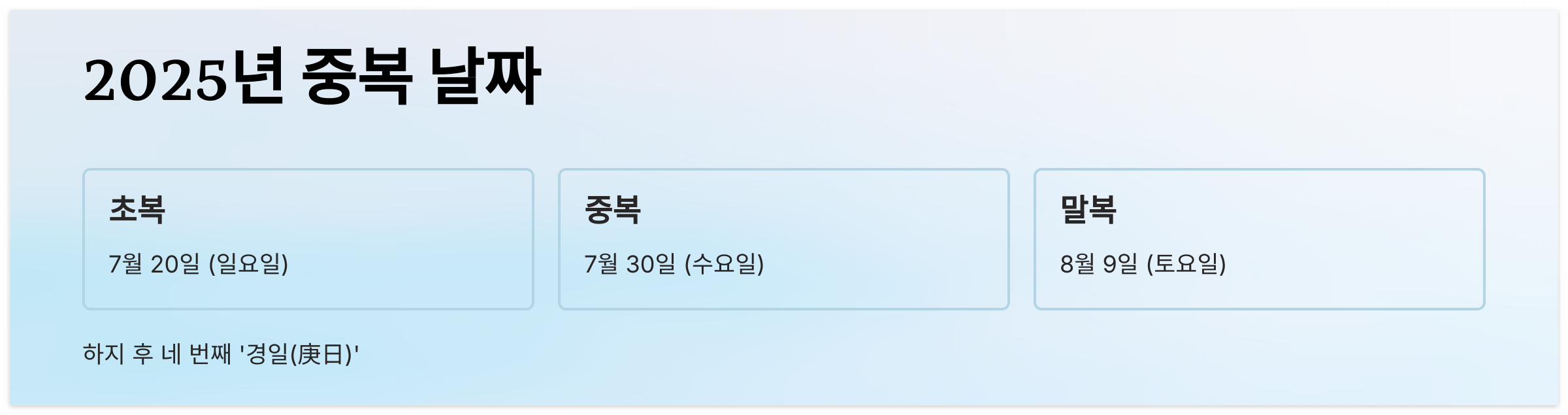 👉 다음 복날은 말복(8월 9일)! 그 전까지 건강 관리 잘하세요 😄