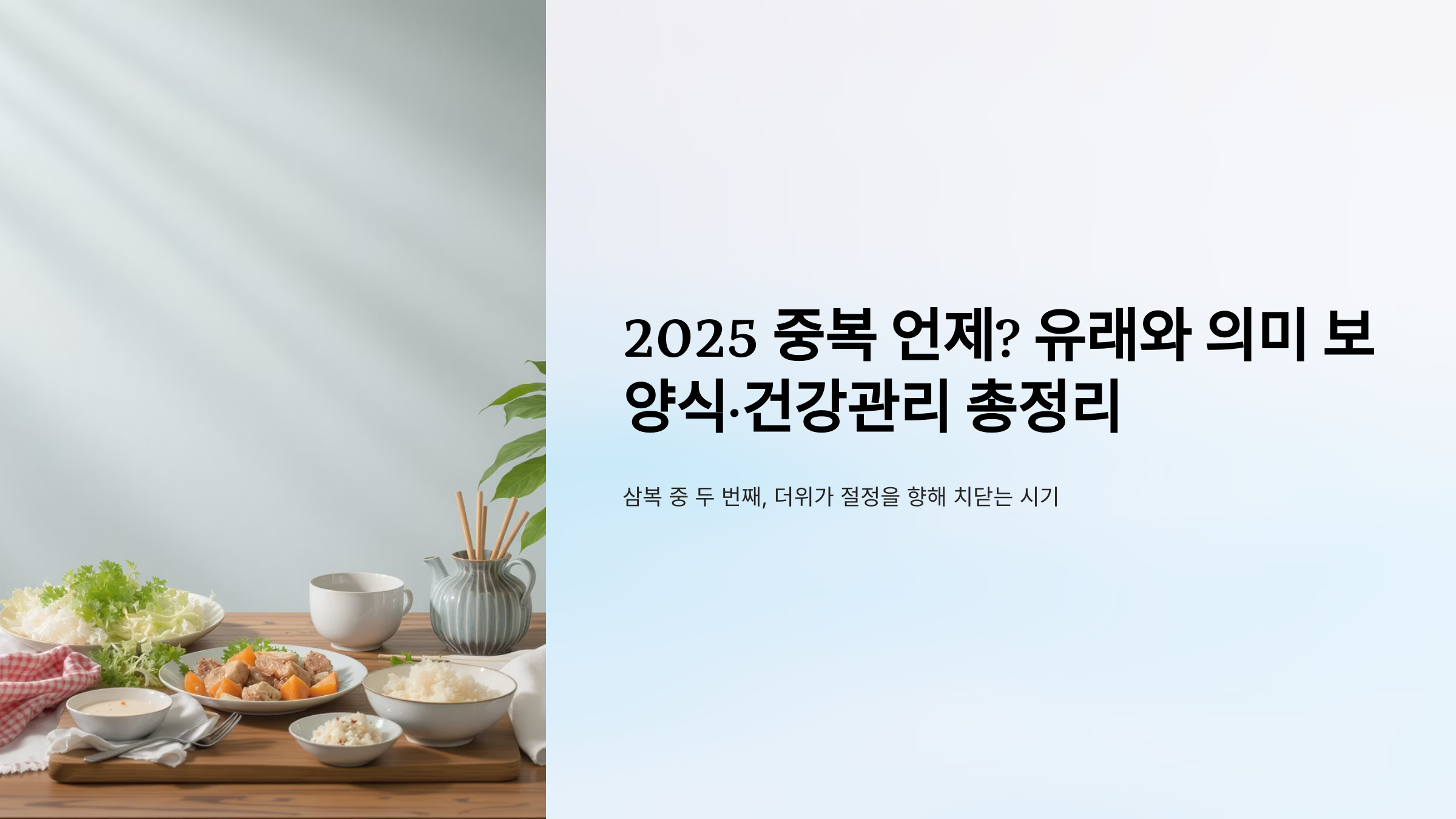 이번 글에서는 중복의 정확한 날짜, 유래, 의미, 그리고 대표 보양식과 건강 관리법을 한눈에 정리해 드립니다.